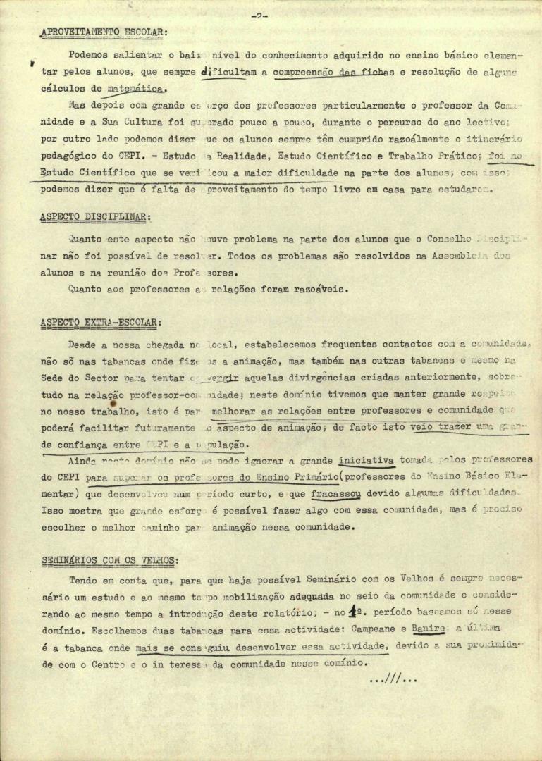 Relatório datilografado anual das atividades desenvolvidas (1982/1983), Cassacá.