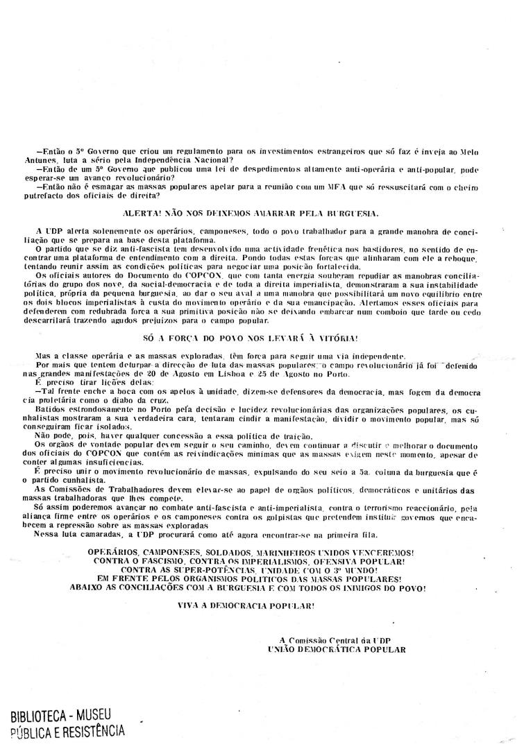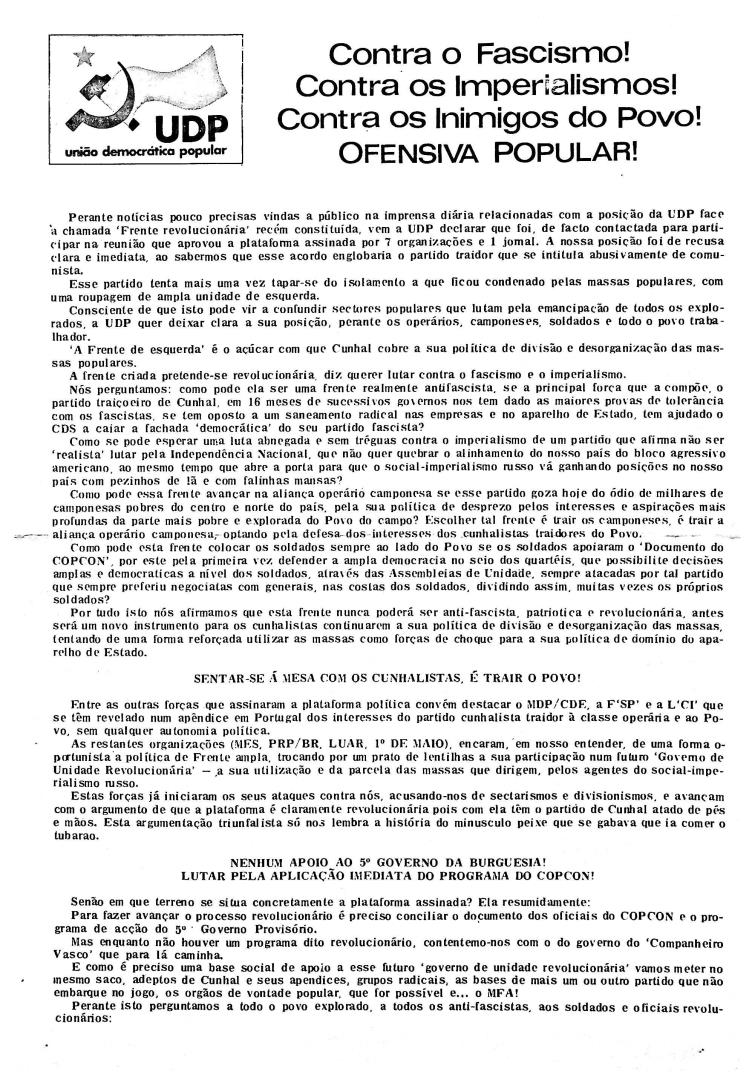 Comunicado da Comissão Central da UDP (União Democrática Popular).