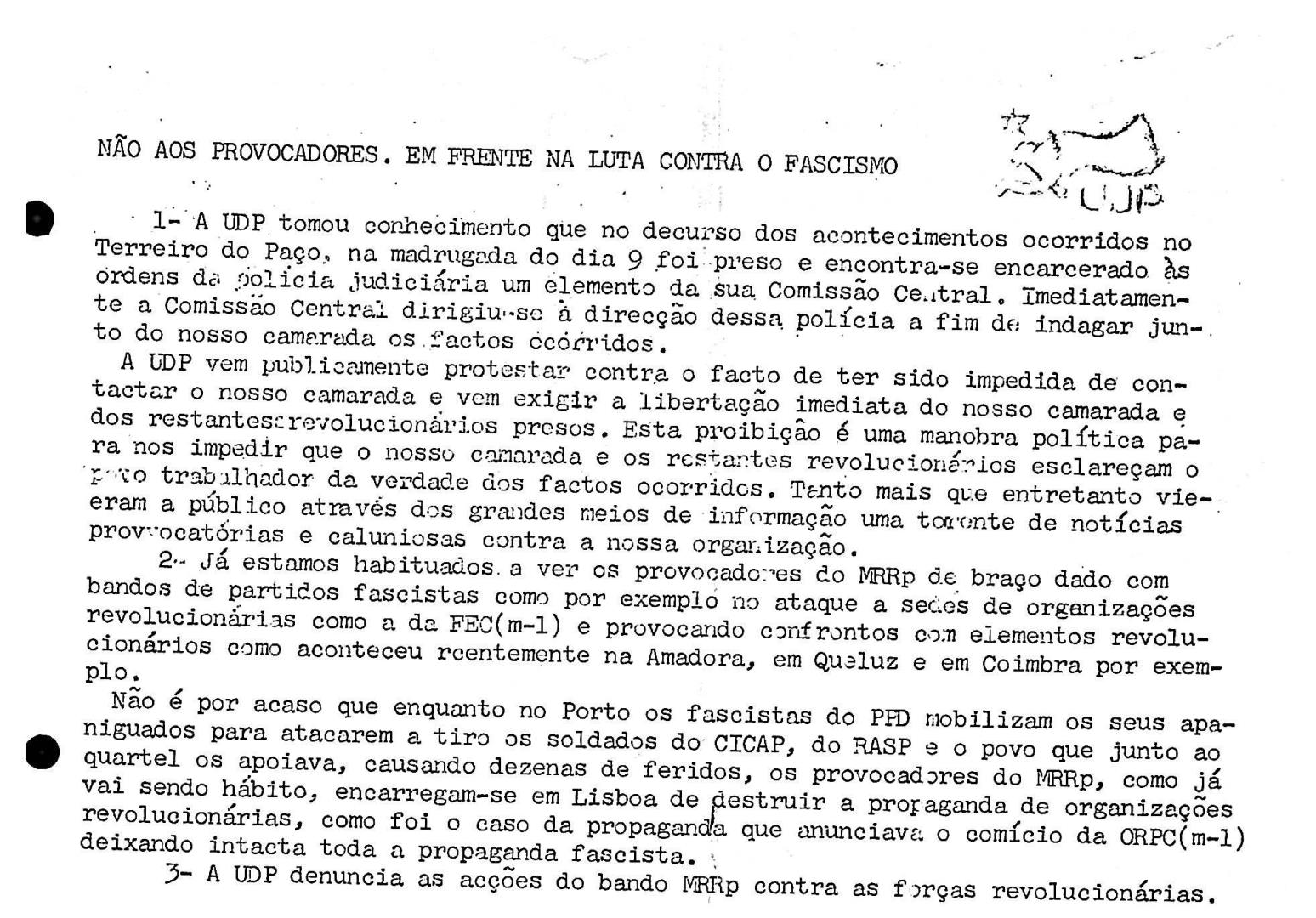 Não aos Provocadores, em Frente na Luta contra o Fascismo