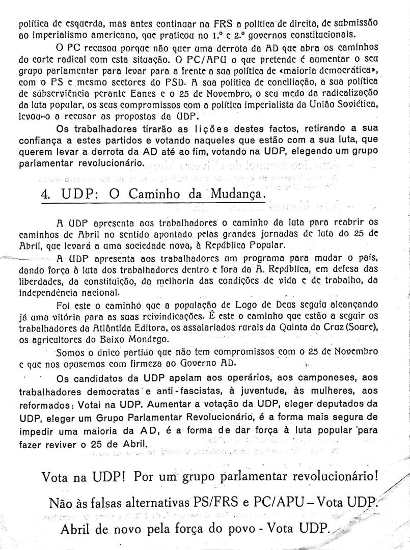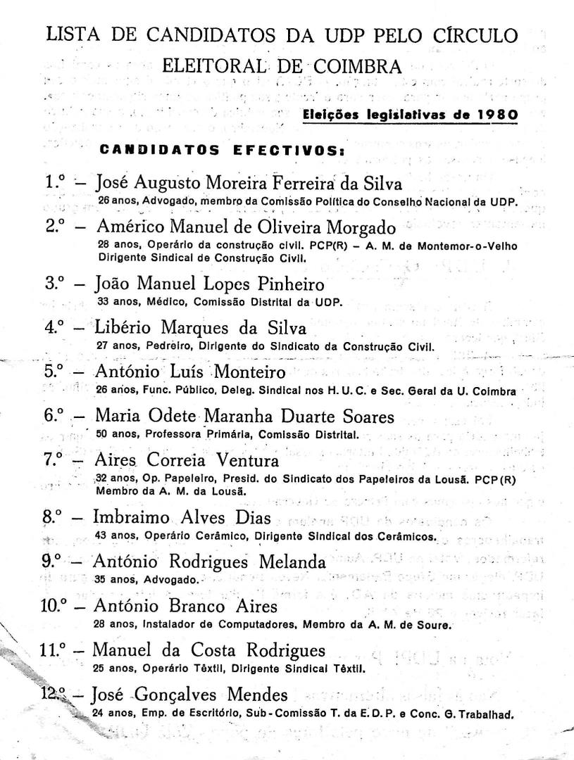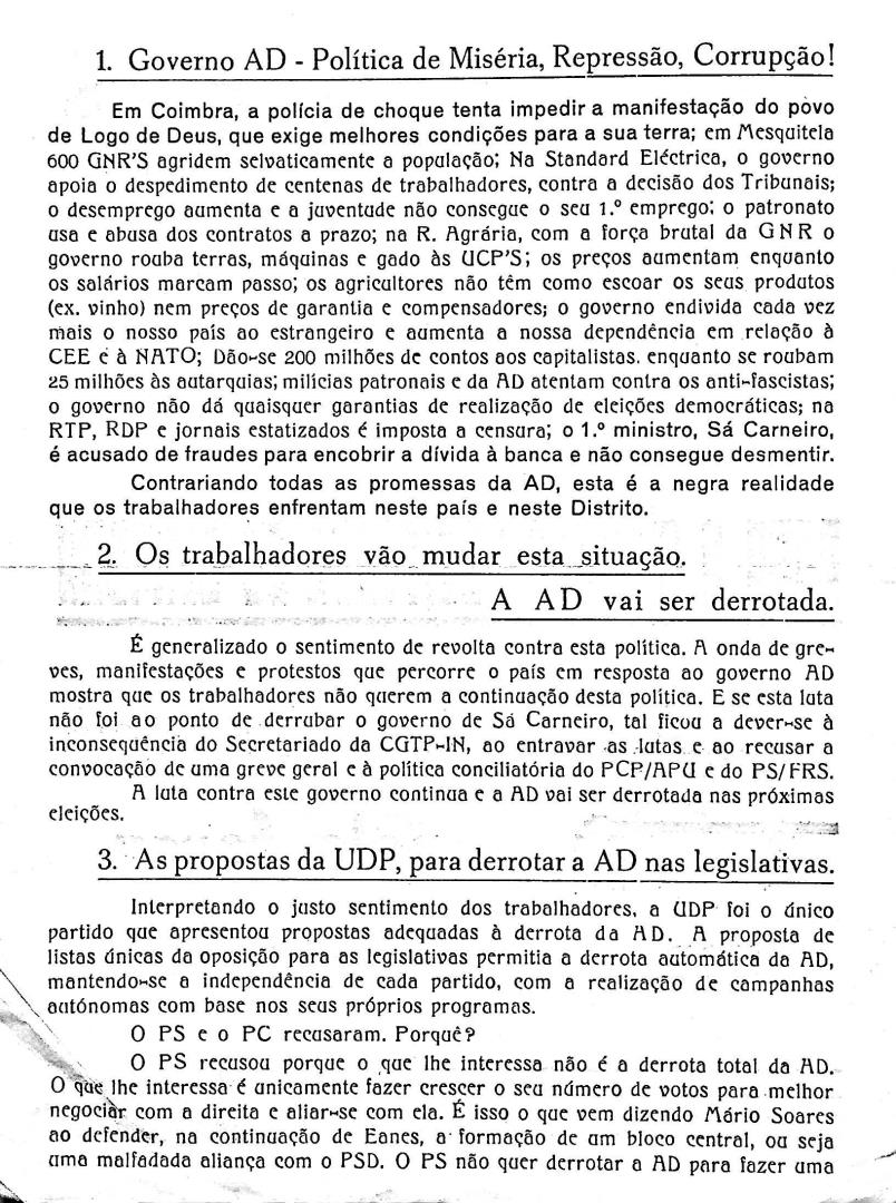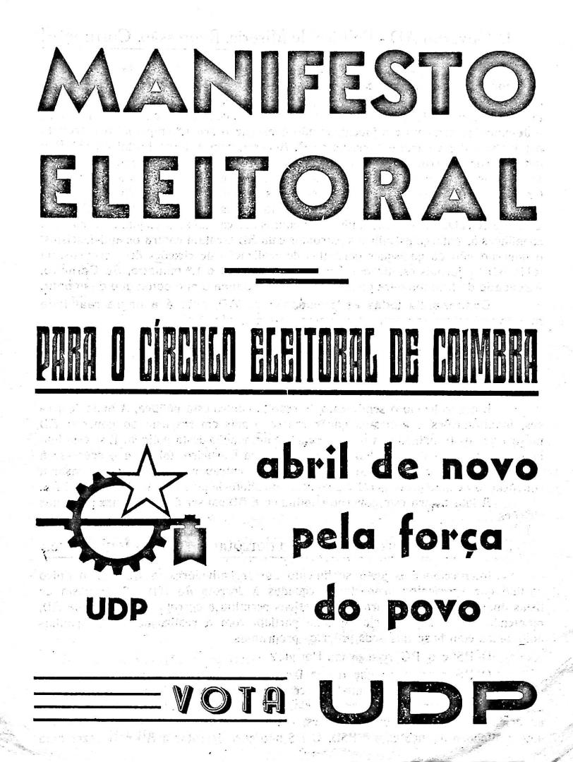 Manifesto Eleitoral para o Círculo Eleitoral de Coimbra. Abril de novo pela força do povo. Vota UDP