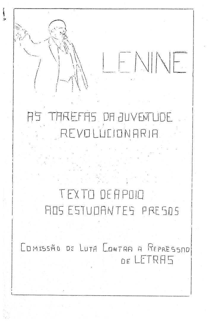 Lenine. As Tarefas da Juventude Revolucionária. Texto de Apoio aos Estudantes Presos. Comissão de Luta contra a Repressão de Letras