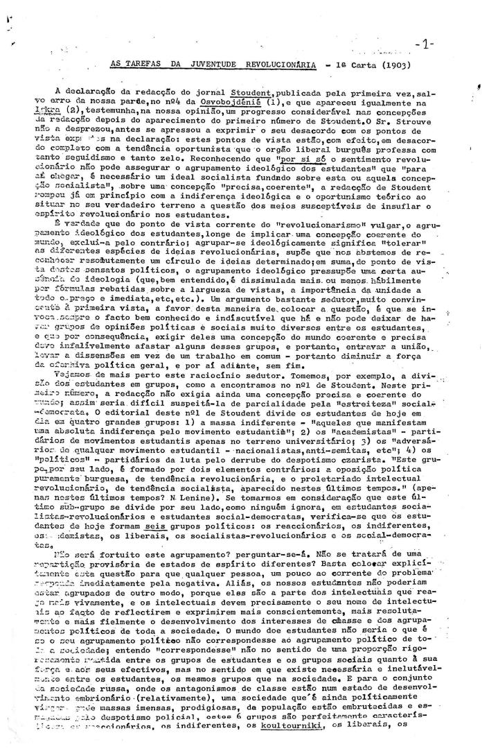 Texto de Apoio aos Estudantes Presos da Comissão de Luta contra a Repressão de LetrasLenine - As Tarefas da Juventude Revolucionária.