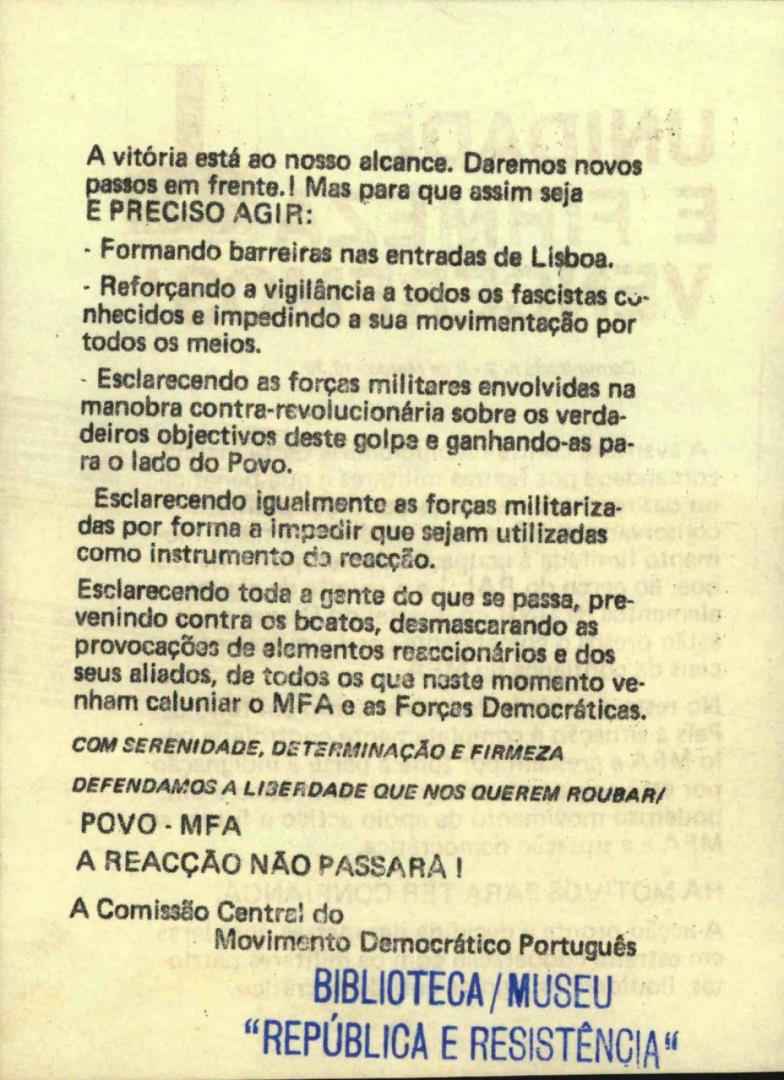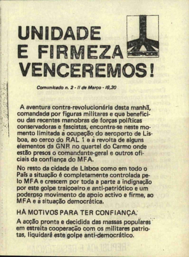 Comunicado N.º 2 da Comissão Central do Movimento Democrático Português.