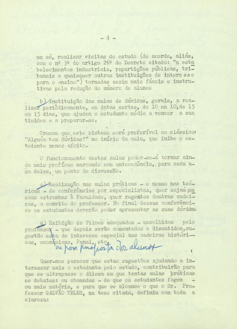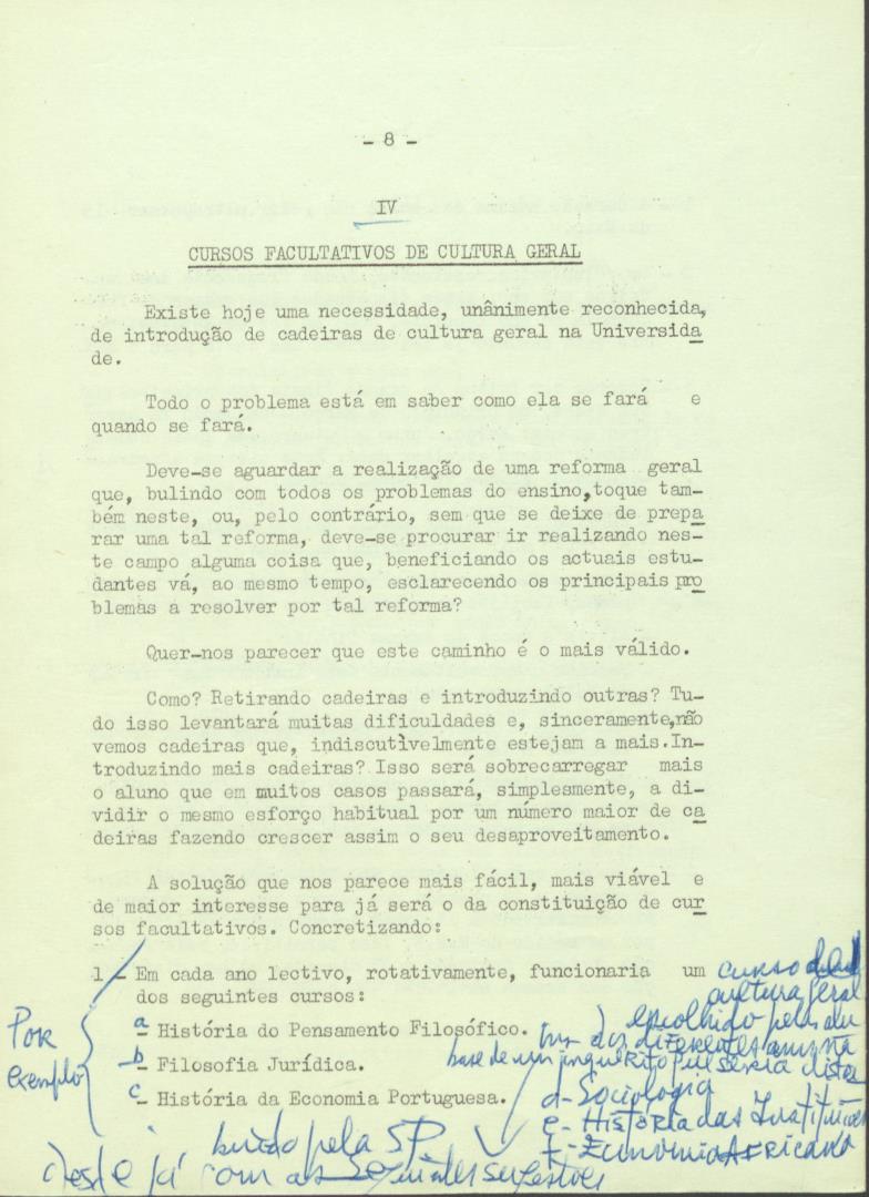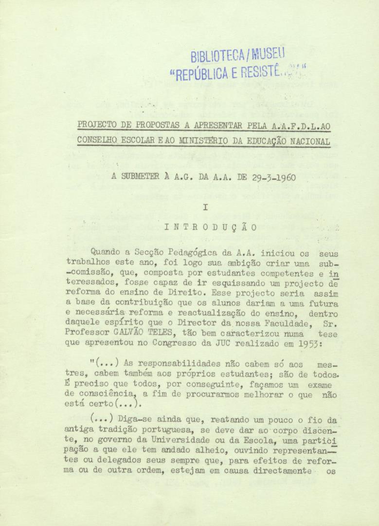 Conteúdo e Estrutura | Âmbito e Cont.: Projeto de propostas a apresentar pela Associação Académica da Faculdade de Direito de Lisboa ao Conselho Escolar e ao Ministério da Educação Nacional e a submeter à Assembleia geral da Associação Académica do dia 29-3-1960.