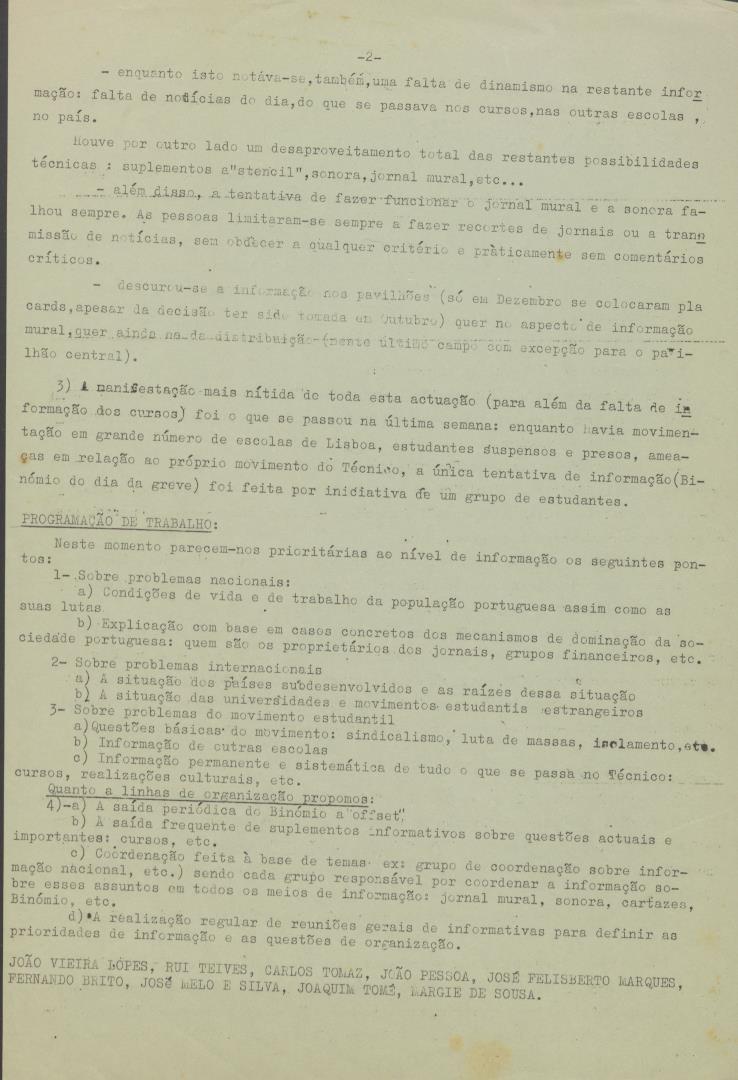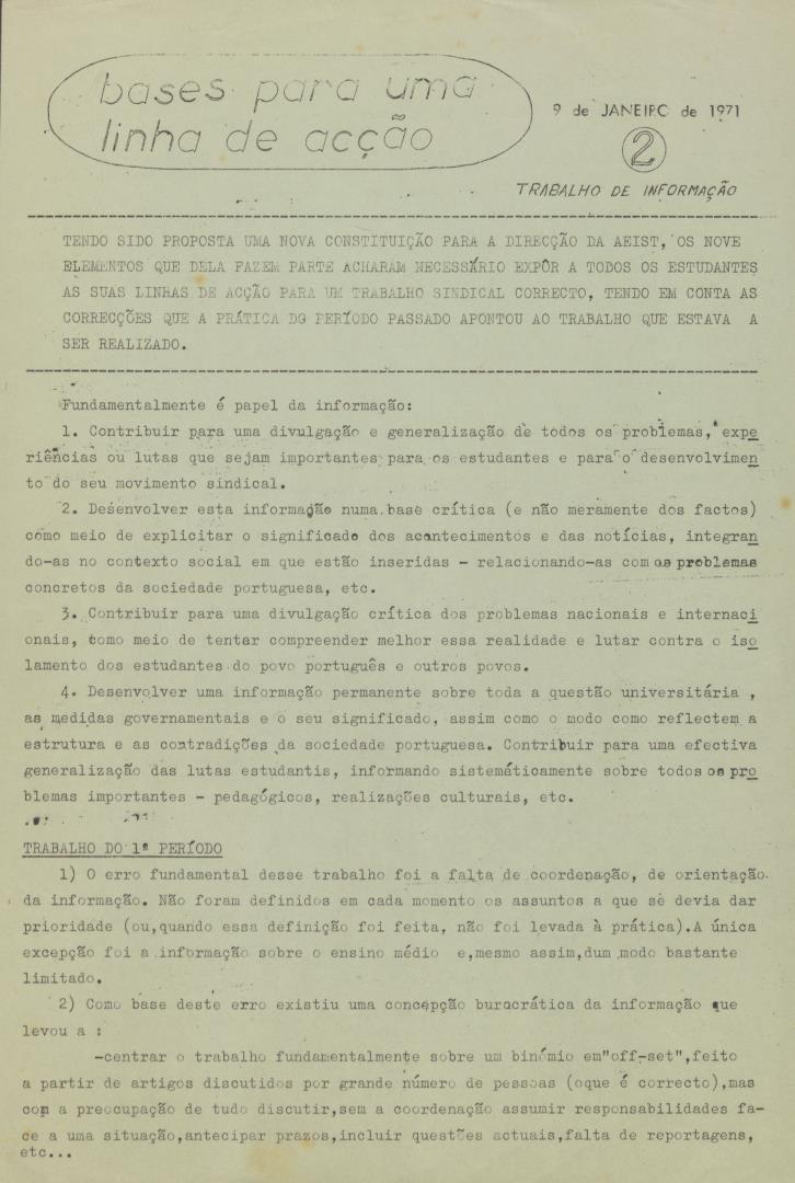 Bases para uma linha de acção, N.º 2 Trabalho de Informação