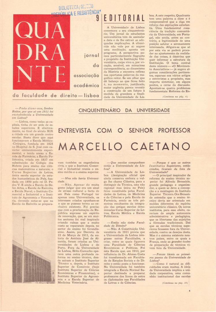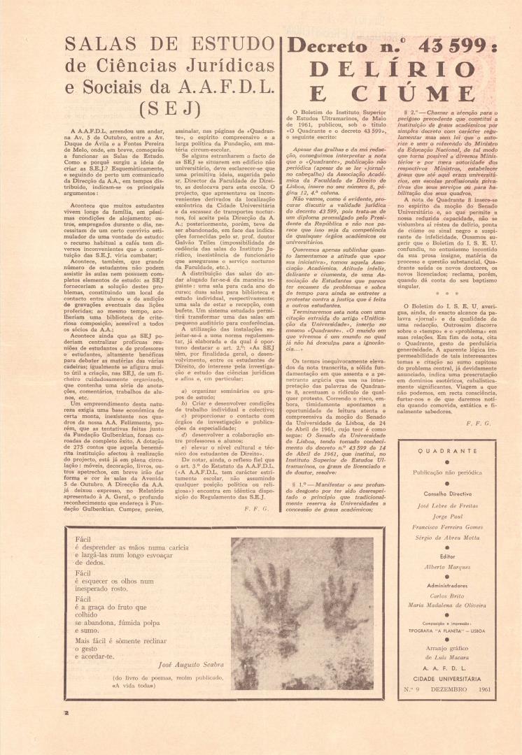 Jornal da Associação Académica da Faculdade de Direito de Lisboa "Quadrante", N.º 9.