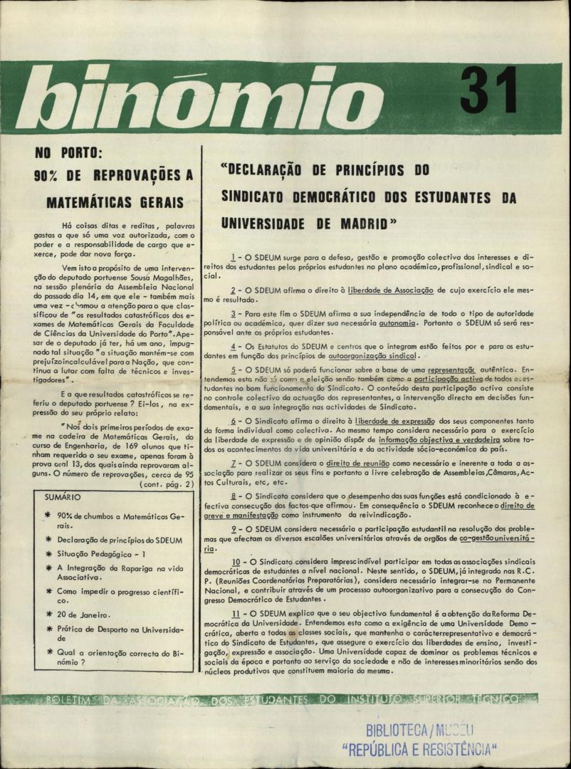 Conteúdo e Estrutura | Âmbito e Cont.: Binómio, Boletim da Associação dos Estudantes do Instituto Superior Técnico, N.º 31.