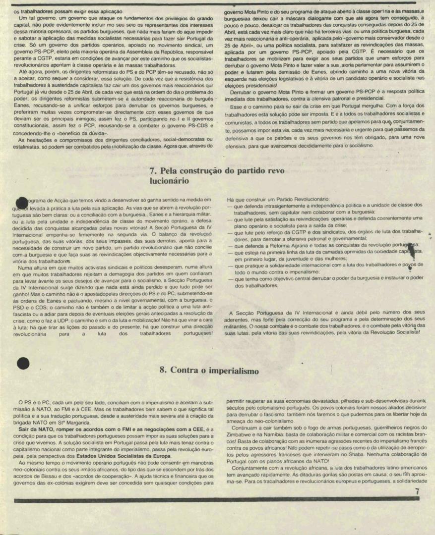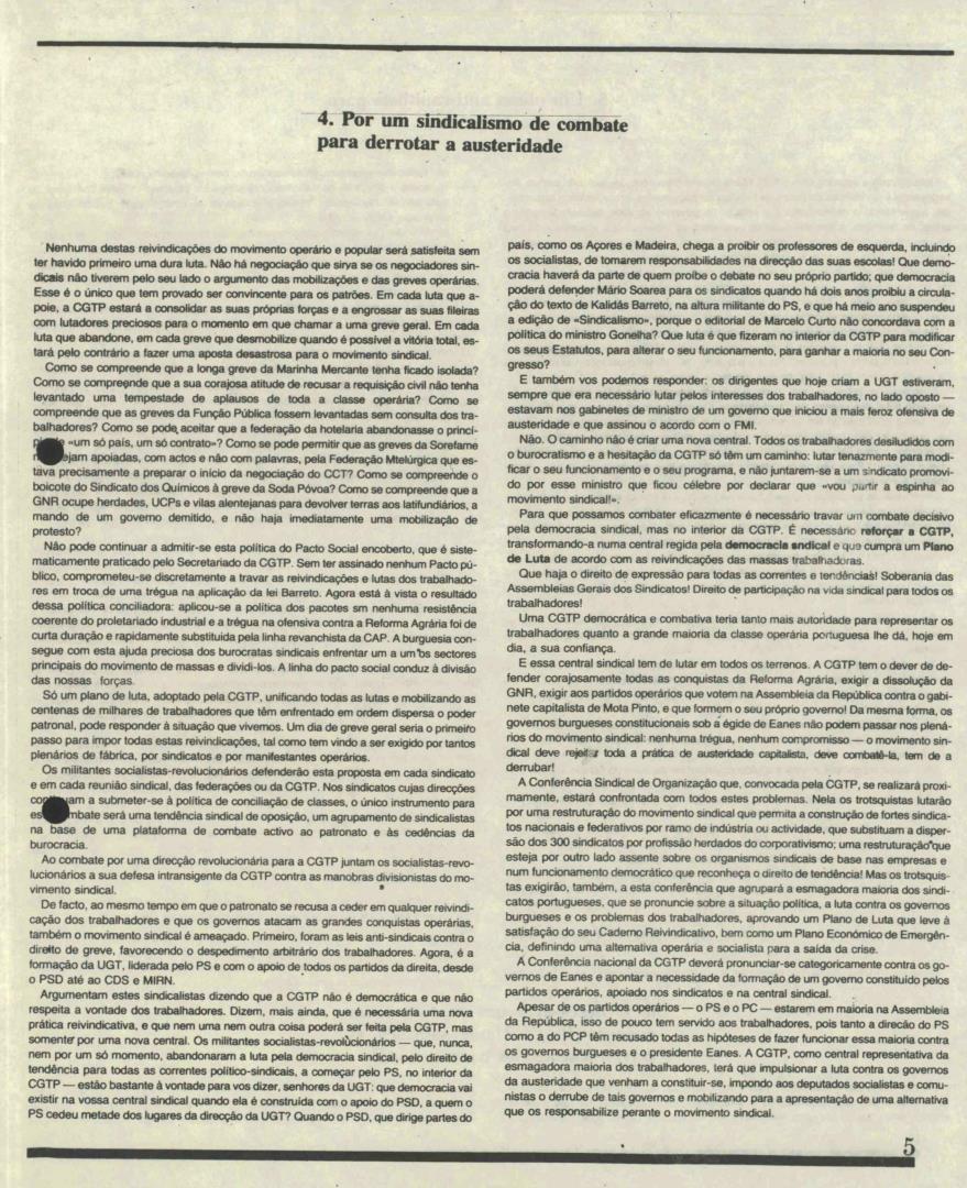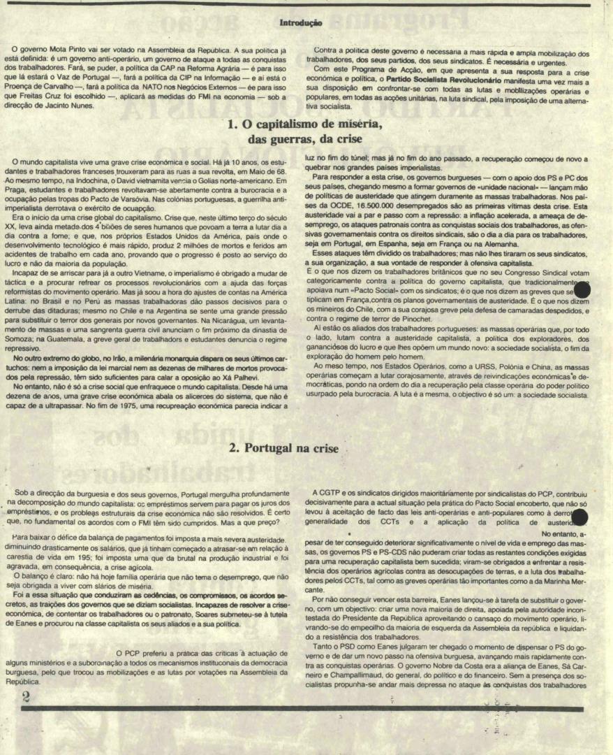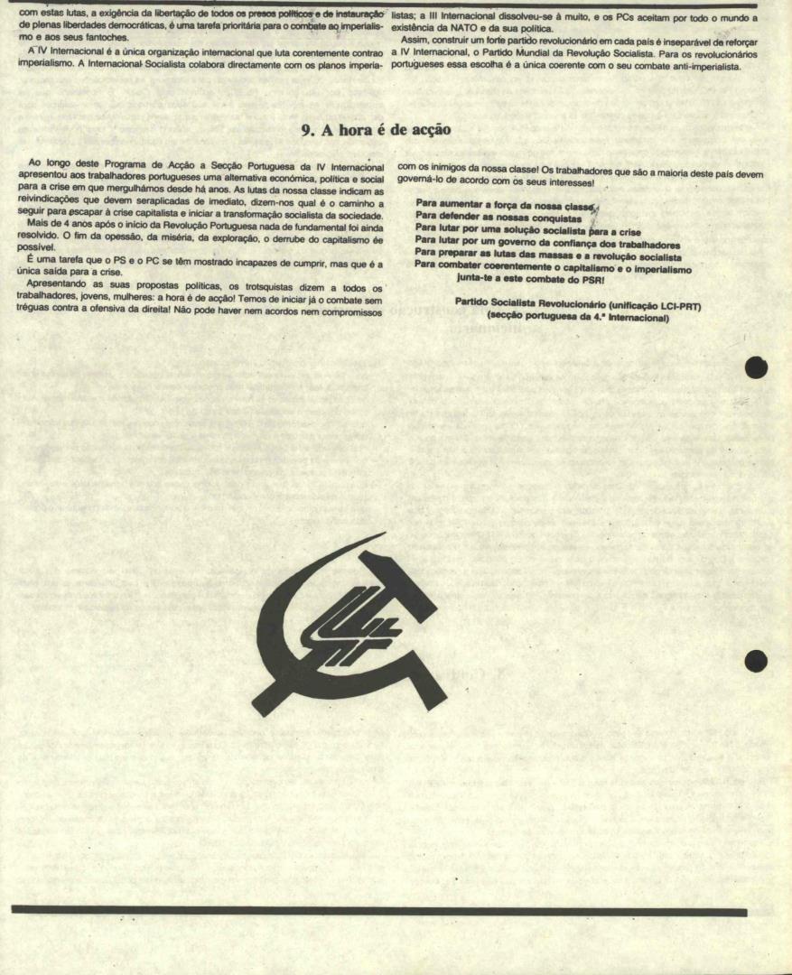 Programa de acção do Partido Socialista Revolucionários. "Pela resposta unida dos trabalhadores contra a austeridade, contra o governo"