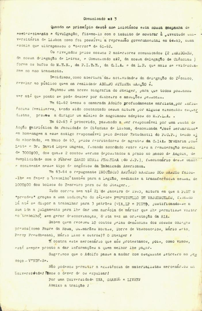 Conteúdo e Estrutura | Âmbito e Cont.: Comunicado N.º 3 das Associações de Estudantes sobre os acontecimentos subjacentes à crise académica.