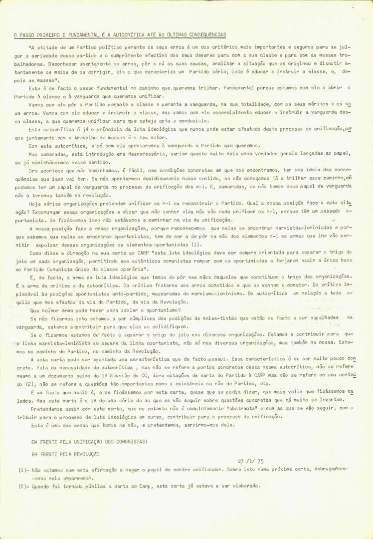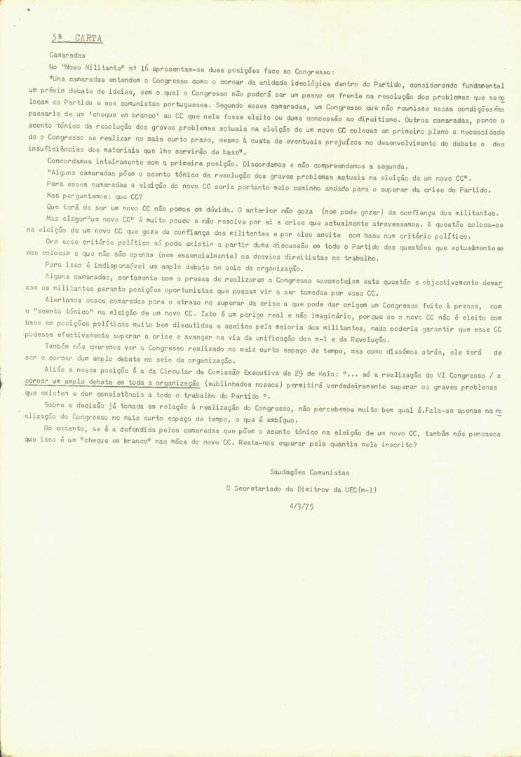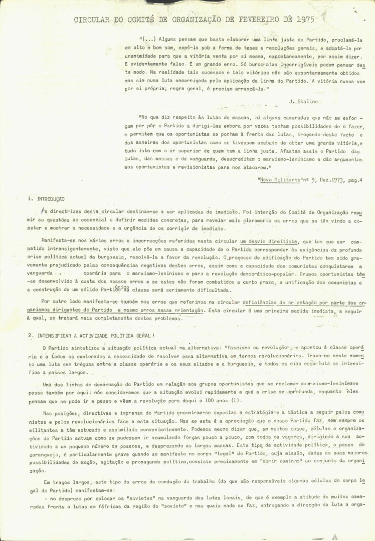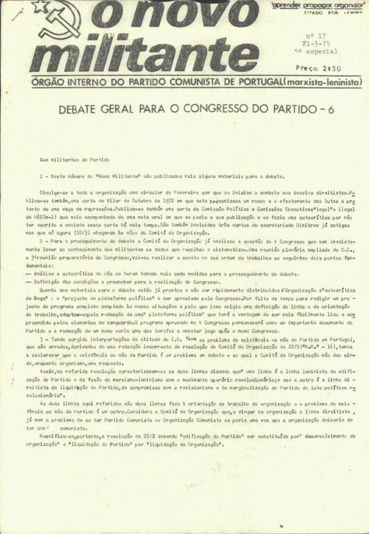 Conteúdo e Estrutura | Âmbito e Cont.: Boletim: O Novo Militante - Órgão Interno do Partido Comunista de Portugal (Marxista-Leninista), N.º 17 (N.º especial), de 21 de Março de 1975.