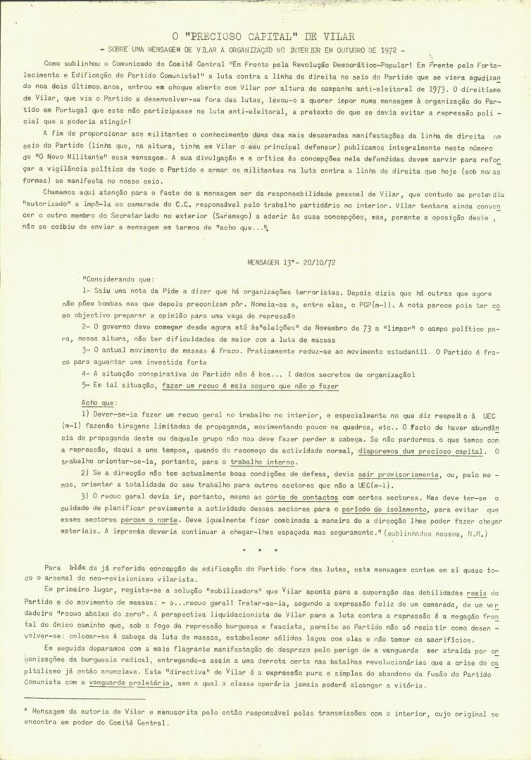 O Novo Militante - Órgão Interno do Partido Comunista de Portugal (Marxista-Leninista), N.º 17 (N.º especial)
