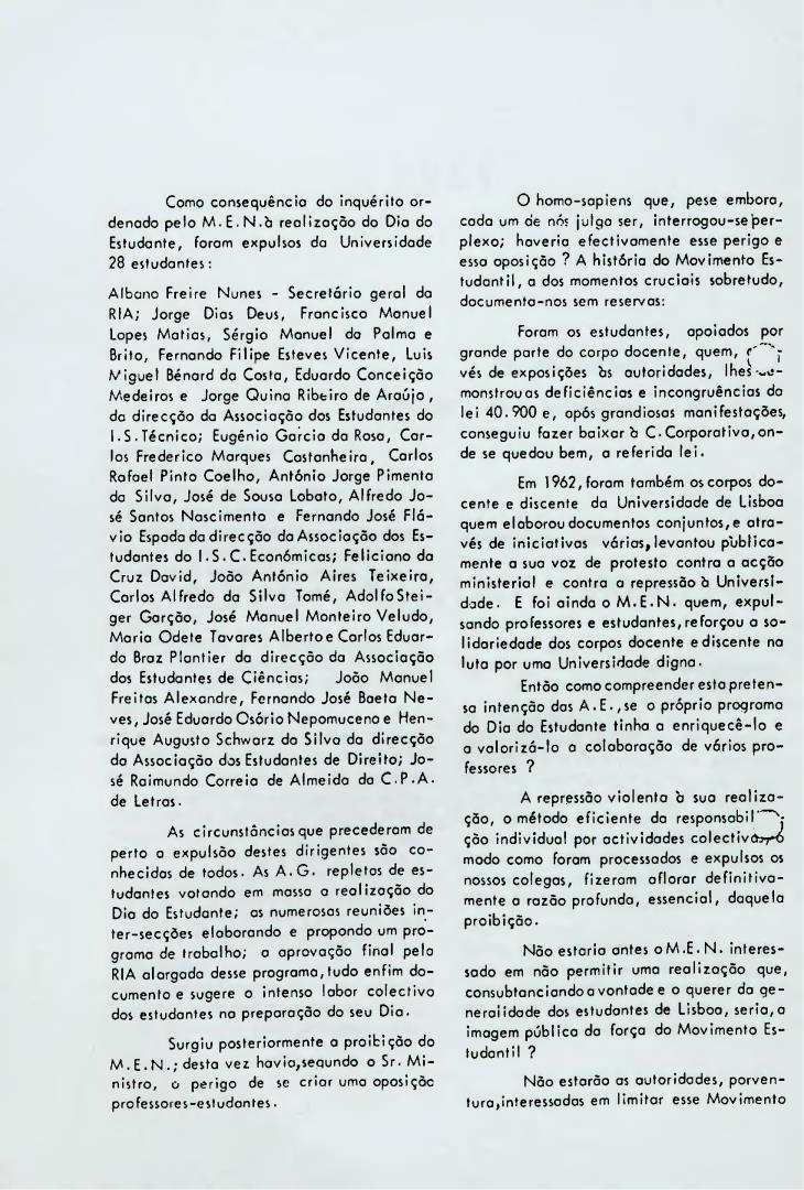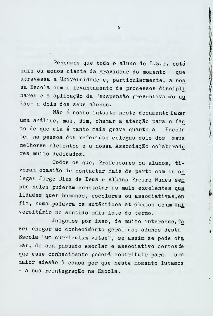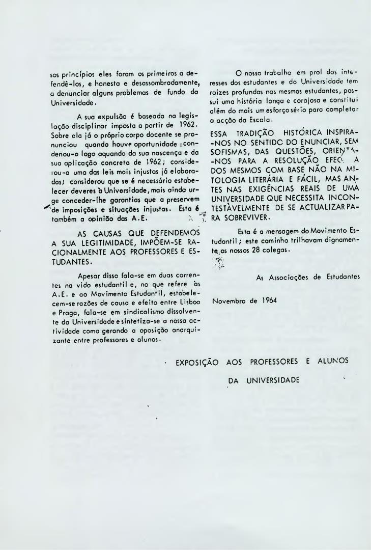 Exposição aos professores e alunos da Universidade sobre os alunos alvo de processos disciplinares, decorrentes da sua participação no Dia do Estudante.