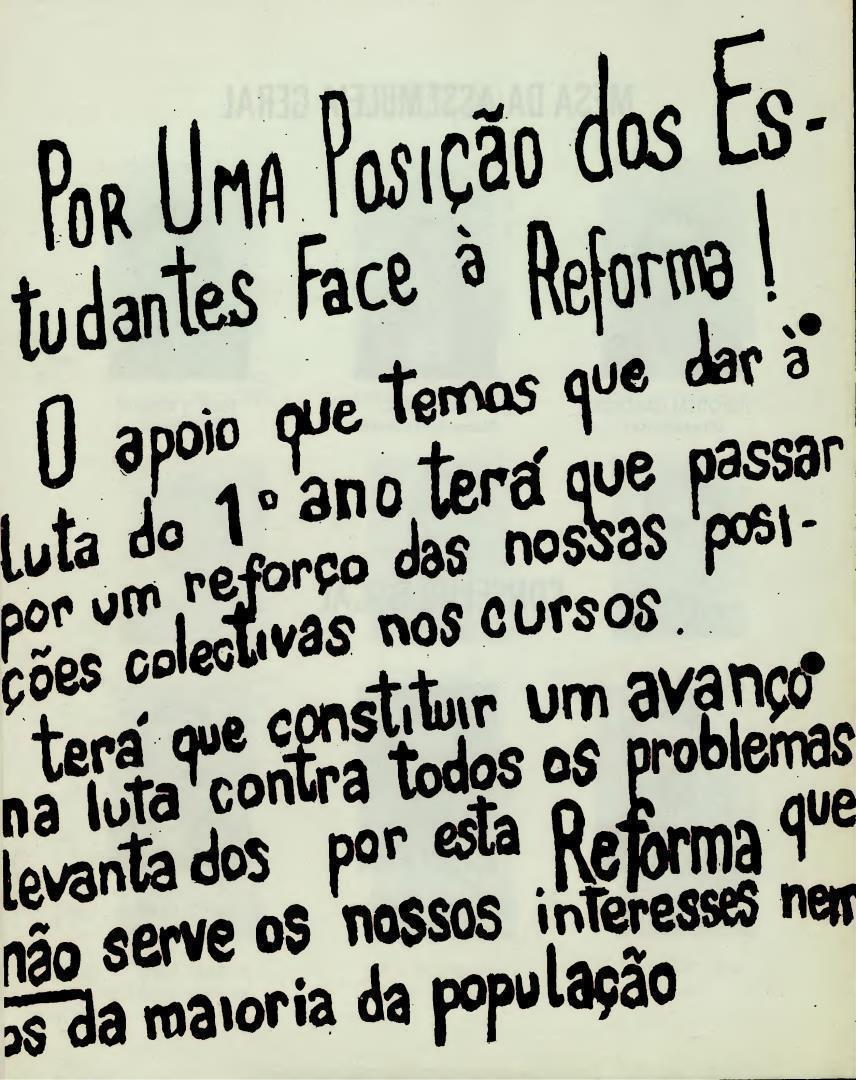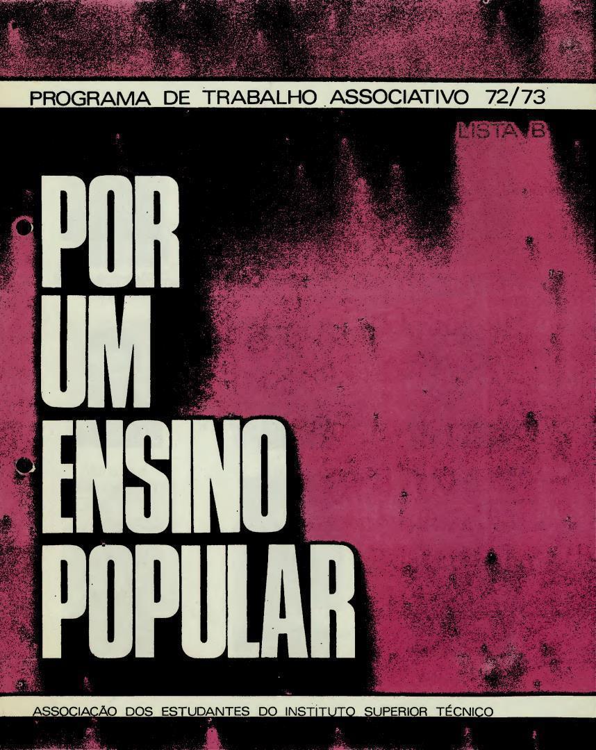 Programa de trabalho associativo para 1972/73 apresentado pela Lista B, candidata à Associação de Estudantes do Instituto Superior Técnico.