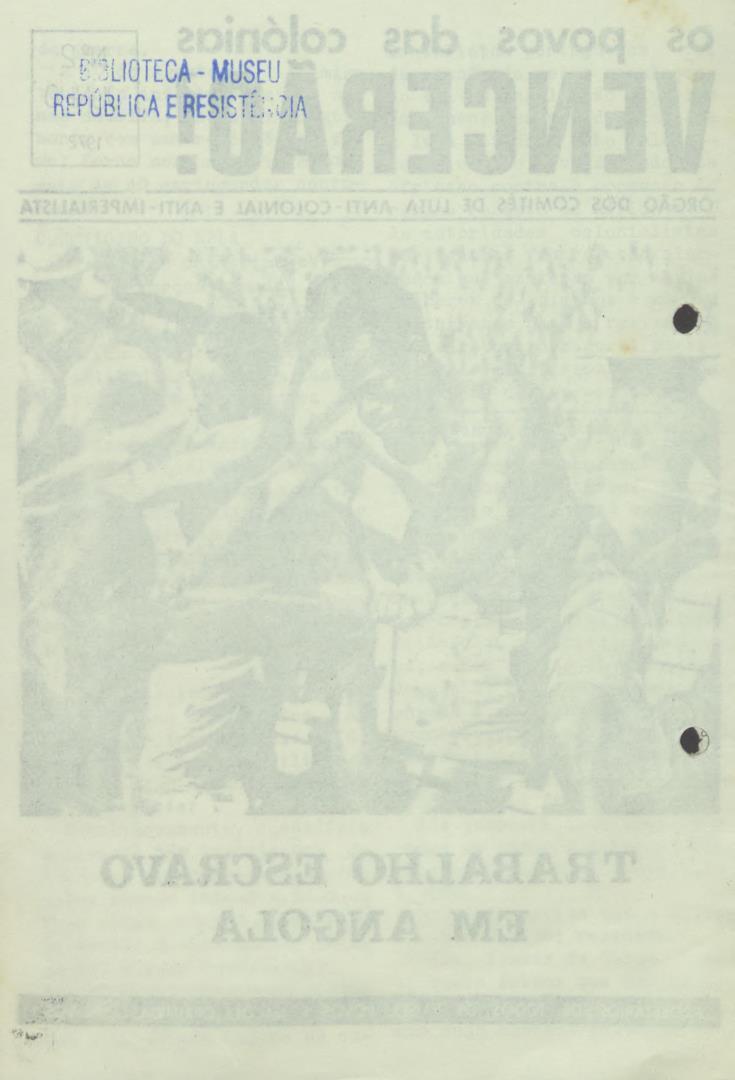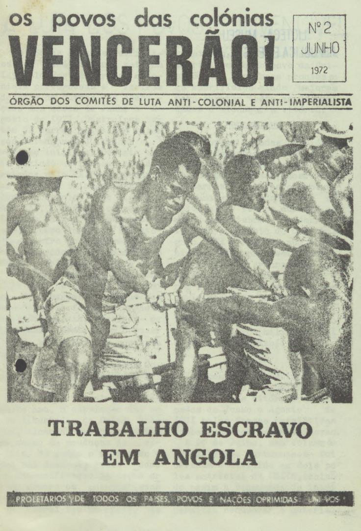 Boletim: Os povos das Colónias Vencerão! - Órgão dos Comités de Luta Anti-Colonial e Anti-Imperialista, N.º 2, de Junho de 1972, com ilustração do trabalho escravo em Angola.