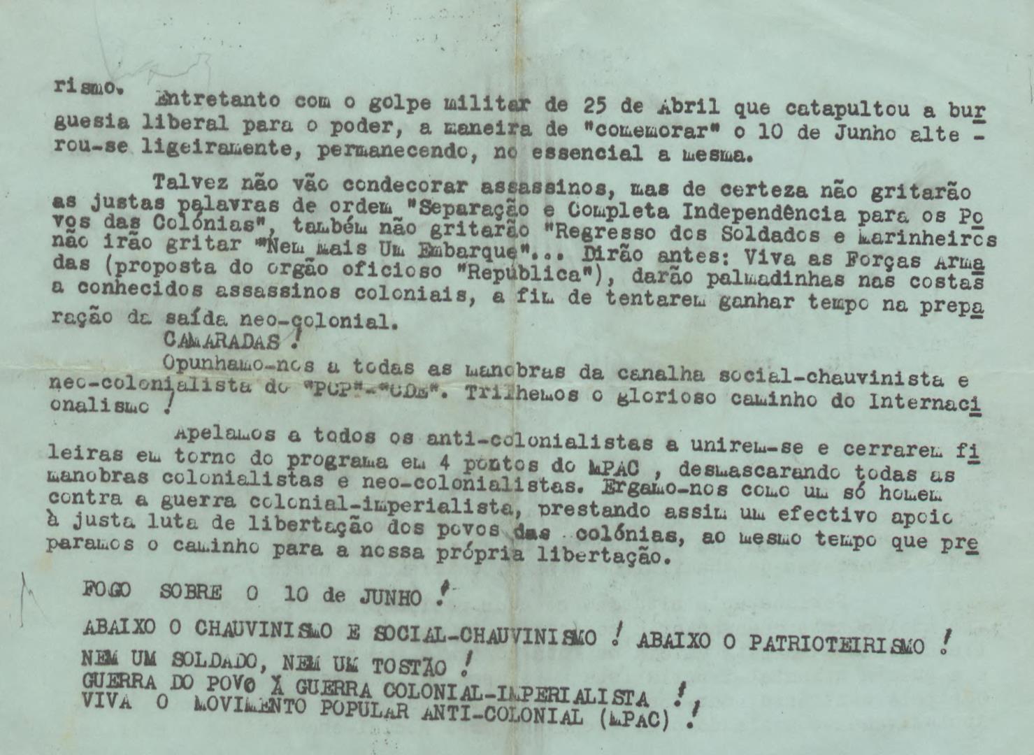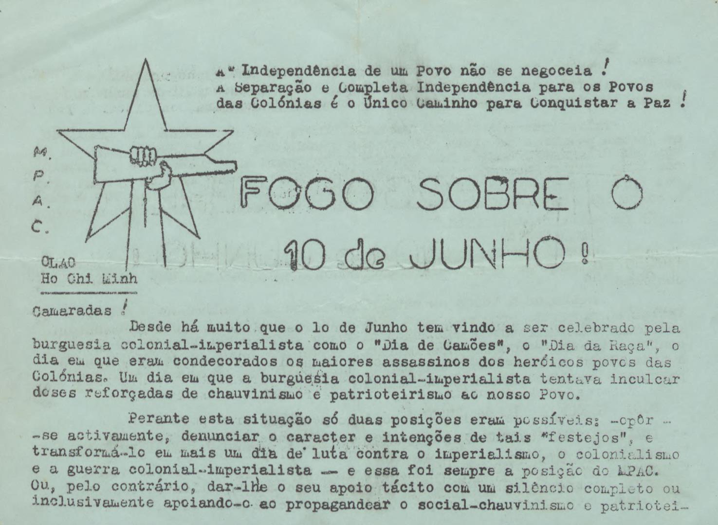 Panfleto de propaganda do MPAC (Movimento Popular Anti-Colonial)
